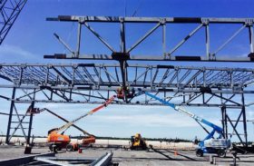 SSW Erectors moved and erected 11,000 pound steel trusses on site at the Plattsburgh International Airport.